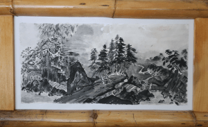 cm monk crossing bridge to temple after Sesshu Toyo 2